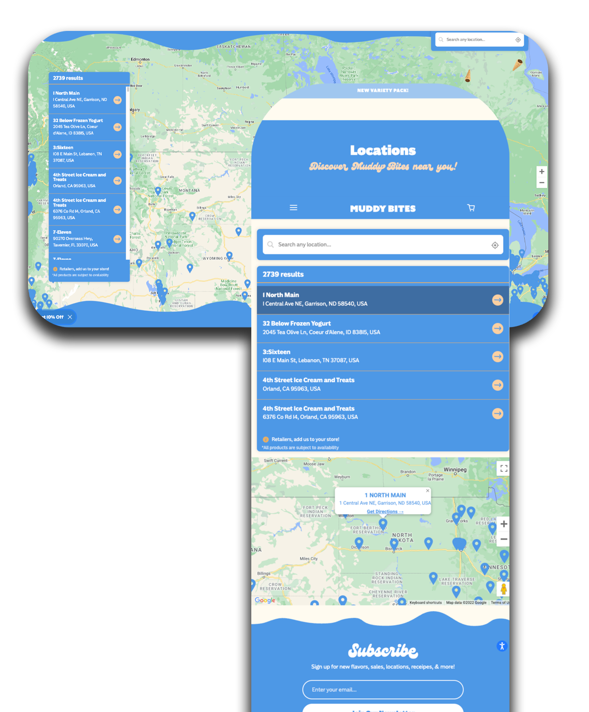 Muddybites approached us with a shop locator that had been developed by a previous firm, but regrettably, it had not been maintained up to speed with the company's new logo. In addition to that, the map pointers were not properly set, and there were some other small errors that needed to be resolved.