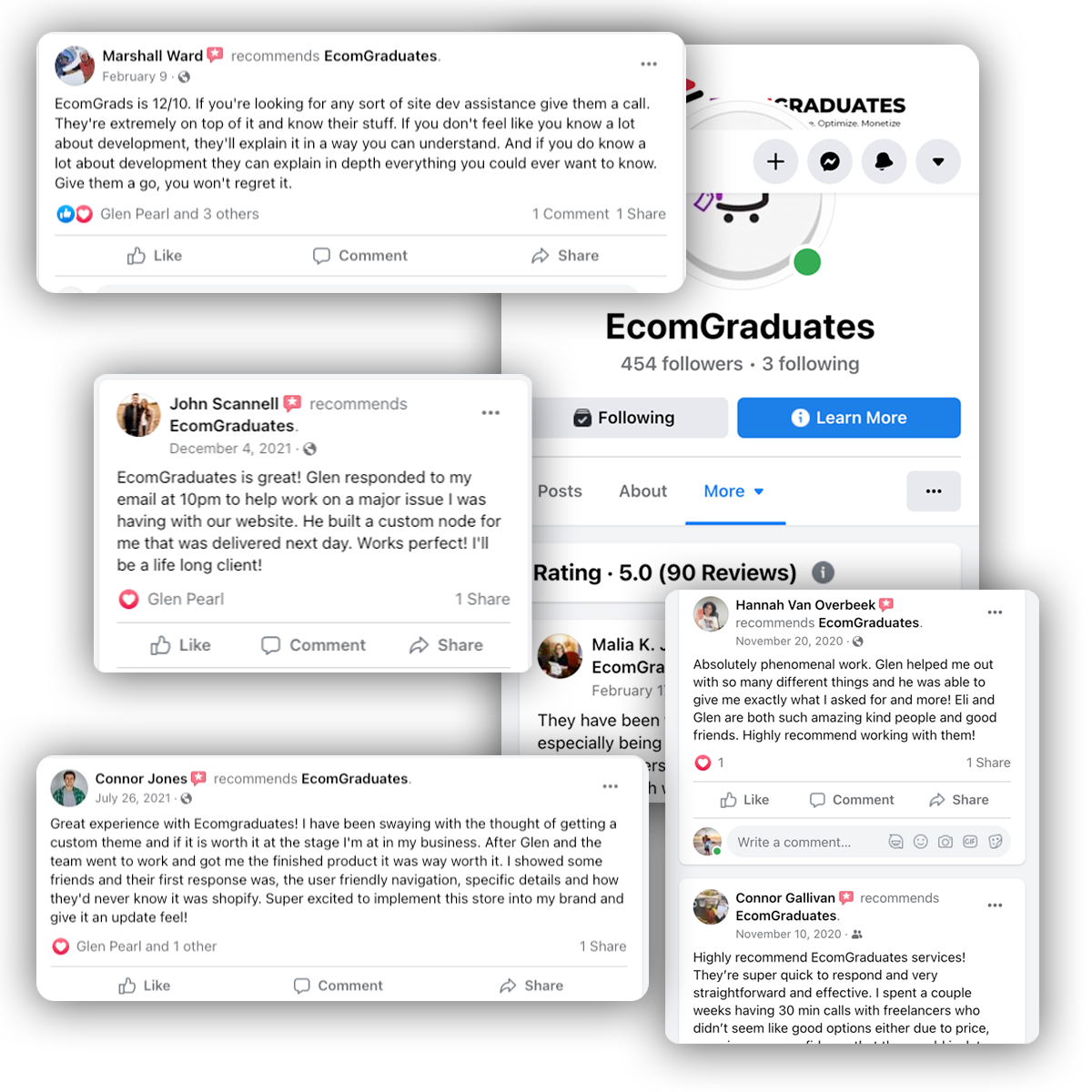 The expert team at EcomGraduates LLC can help with the design and function of your Shopify store so you can focus on what you do best.